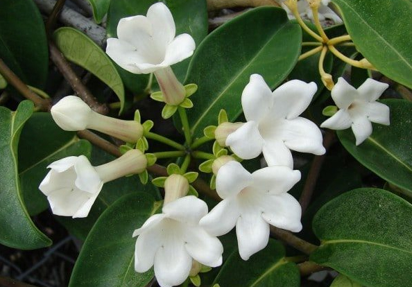 꽃의 향기가 좋은 관엽식물 마다가스카르 재스민(stephanotis floribunda)은 따뜻한 마다가스카르가 원산지입니다. 7~8월에 피는 하얀 꽃이 재스민 같은 향이 나서 마다가스카르 재스민이라 부릅니다. 또 다른 이름은 덩굴 재스민이라고도 합니다. 긴타원형 모양의 잎이 마주 보게 자라며 광택이 나는 진한 녹색입니다. 꽃말은 영원한 행복, 사랑의 기쁨, 당신은 나의 것입니다.