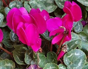 겨우내 꽃을 볼 수 있는 시클라멘은 앵초과에 속하는 다년생 구근 식물입니다. 꽃말은 겸손, 질투, 수줍음입니다. 원산지는 지중해 연안입니다. 시리아, 지중해, 그리스에 분포합니다. 꽃도 예쁘지만 잎 모양도 굉장히 예쁜 관상용 식물입니다. 꽃이 피어 있는 동안에는 햇빛을 많이 보여주세요. 꽃대가 계속 올라옵니다. 키우기가 조금 어려운 편에 속하지만 통풍과 시원한 환경을 잘 이해한다면 잘 키울 수 있습니다.