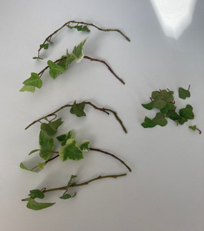 물속으로 들어갈 줄기의 잎들은 잘라주세요. 자를 때에 중요한 점은 소독한 가위를 사용하시고 아이비는 독성이 있어 손에 닿지 않게 조심히 잘라주세요. 뿌리가 빨리 자라게 하기 위해서는 속이 보이는 투명보다는 빛이 차단될 수 있는 병이 좋습니다. 뿌리가 나면 흙으로 옮겨도 좋고, 수경재배로 계속 키울 경우에는 흙에서보다 덜 자랄 수 있습니다. 이때 액체비료를 1~2방울 넣어주세요. 물속에 양분이 없기 때문에 영양제를 따로 넣어주면 잘 성장합니다.