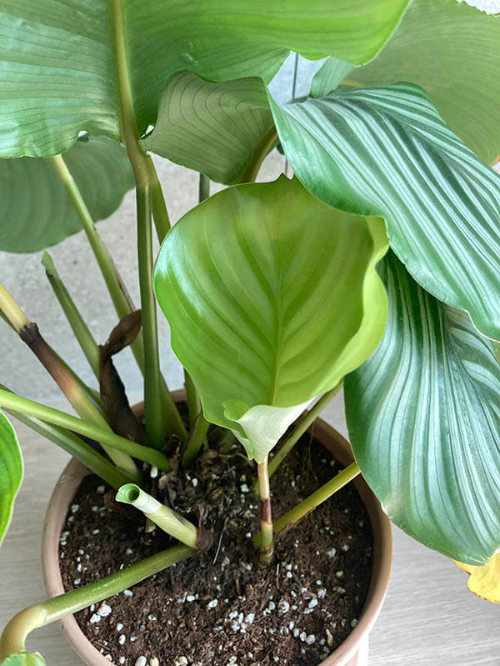 칼라데아는 과습에 민감하니 배수와 통기성이 좋은 흙을 사용해 분갈이하는 것이 좋습니다.