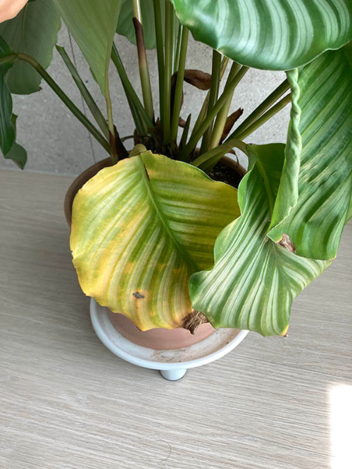 칼라데아과들은 물에 민감해 잎이 타기도 하는데요. 수돗물에 포함된 염소 때문입니다.