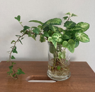 물속으로 들어갈 줄기의 잎들은 잘라주세요. 자를 때에 중요한 점은 소독한 가위를 사용하시고 아이비는 독성이 있어 손에 닿지 않게 조심히 잘라주세요. 뿌리가 빨리 자라게 하기 위해서는 속이 보이는 투명보다는 빛이 차단될 수 있는 병이 좋습니다. 뿌리가 나면 흙으로 옮겨도 좋고, 수경재배로 계속 키울 경우에는 흙에서보다 덜 자랄 수 있습니다. 이때 액체비료를 1~2방울 넣어주세요. 물속에 양분이 없기 때문에 영양제를 따로 넣어주면 잘 성장합니다.